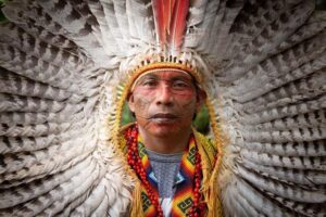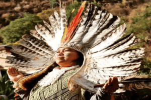 Ninawa, originaire du village Huni Igarapé do Caucho, est né dans une lignée de dirigeants, puisqu’il est le fils du chef de la tribu. Son éducation a été unique, car dès son plus jeune âge, il a été immergé dans l’éducation spirituelle et les pratiques de guérison. Sa formation visait à faire de lui un chaman, un chef spirituel chargé de maintenir l’harmonie au sein de la communauté. Outre son rôle de chaman, Ninawa est également éducateur. Il est profondément attaché à la préservation et à la transmission de la langue Hãtxa Kuî, une langue indigène de sa tribu. Son enseignement s’étend également aux coutumes et à la sagesse de la tribu, garantissant que les connaissances des anciennes générations ne se perdent pas mais continuent de prospérer. La puissance spirituelle de Ninawa ne se limite pas à son rôle de chaman ou d’enseignant. Il manifeste fréquemment sa vigueur spirituelle à travers des chansons traditionnelles, un moyen d’expression qui lui permet de partager sa profonde compréhension de la forêt et de ses éléments mystiques. Sa musique, imprégnée d’énergie spirituelle, résume l’essence du lien de la tribu avec la nature.
